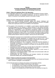 - The ESDN promotes sustainable development policies and shares best practices on topics that add value to regular members and to a wider group of sustainability professionals and stakeholders in the public and private sectors, civil society and in academia.