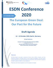 The ESDN Conference 2020 took place on 12 – 13 October 2020 virtually. It was organized by the ESDN Association in cooperation with the German Federal Ministry for the Environment, Nature Conservation and Nuclear Safety. The Conference will be a 1.5-day event (12 October was a half day and 13 October was a full day that runs until 16:00 CEST) and was an official event of the German Presidency of the Council of the European Union. The Conference brought together sustainable development policymakers and experts from different stakeholder groups from all over Europe.