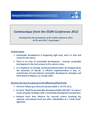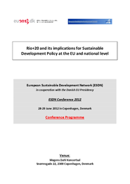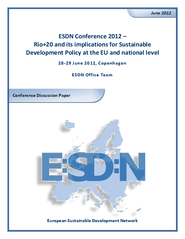 The ESDN Conference 2012 was entitled “Rio+20 and its implications for Sustainable Development Policy at the EU and national level”. Taking place shortly after the UN Conference on Sustainable Development, the ESDN Conference 2012 provided a platform to reflect on the results of Rio+20 and to discuss their implications on content and SD governance for the different political levels. Moreover, the ESDN Steering Group will, together with the conference participants, develop recommendations for implementing the Rio+20 results in practice.
