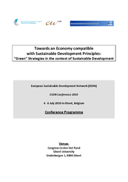The ESDN Conference 2010 was hosted by the Belgian EU Presidency and took place in Ghent on 4-6 July 2010. The conference aimed to reflect on linking economic growth and sustainable development based on the results of the 5th ESDN Workshop that took place in Madrid in March 2010. More specifically, the conference elaborated on how best to address environmental and social challenges in strategies and activities that link economic growth and sustainable development, particularly in the “Europe 2020” strategy, UNEP’s Green Economy Initiative and the preparation of UNCSD 2010 as well as the OECD’s Green Growth Strategy. In so doing, the conference participants discussed innovative approaches of sustainable development, how to achieve coherence among policy sectors, and reflected on governance mechanisms, policy tools and monitoring schemes. The conference will comprised three sessions: (i) Linking economic growth and sustainable development – addressing environmental and social challenges, (ii) From green growth towards an economy compatible with sustainable development principles (parallel working groups), and (iii) Moving towards a sustainable economy: criteria, tools and mechanisms.