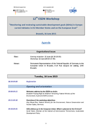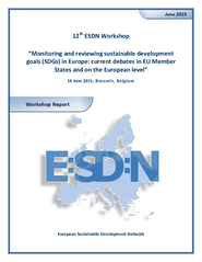 - In continuation of the work done in the ESDN 2014 Conference, which focused on the impact of the SDGs process on the European SD governance framework and on EU Member States, the 12th ESDN workshop will develop further those discussions with a fuller consideration of those aspects related to SDGs monitoring and reviewing processes in Europe, particularly in the EU Member States;