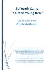 European Youth Camp 2020, 10-11 October 2020, Berlin. European young people were invited prior to the ESDN Conference 2020 to formulate inspiring and challenging ideas for a sustainable European Green Deal as a roadmap towards a sustainable European future. As a result of this event, young people produced Youth Manifesto.