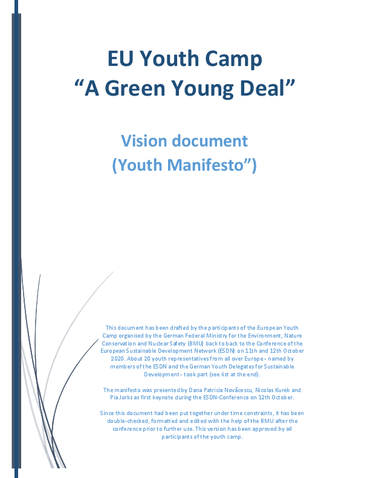 This document has been drafted by the participants of the European Youth Camp organised by the German Federal Ministry for the Environment, Nature…
